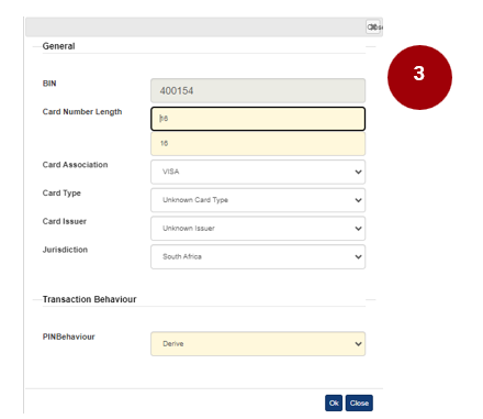 The most common parameters that are requested to be amended are ‘Card Number Length’ and ‘Card Type’.