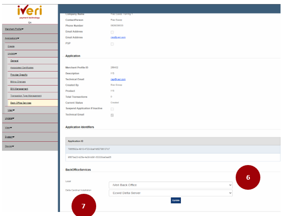 9. The Merchant page will populate automatically, then you would need to select Update.