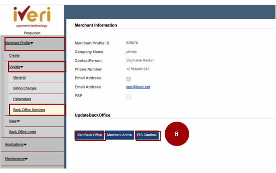 8.Select the “iVeri Back Office”, IYS Cardinal tab and the “Merchant Admin” tab to update and create the Backoffice services.