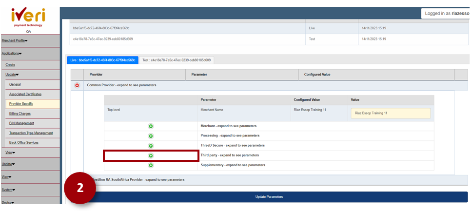 2. Navigate to the ‘Third Party’ parameter and click on the expansion tab.