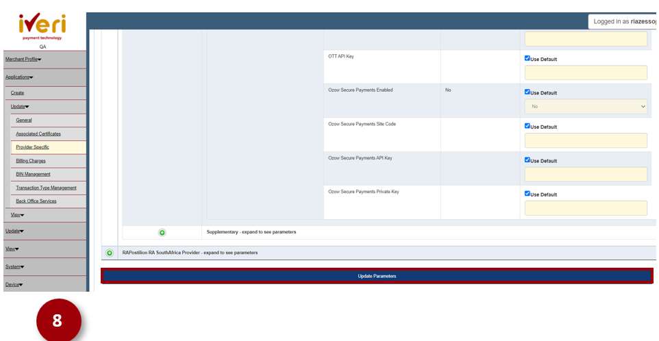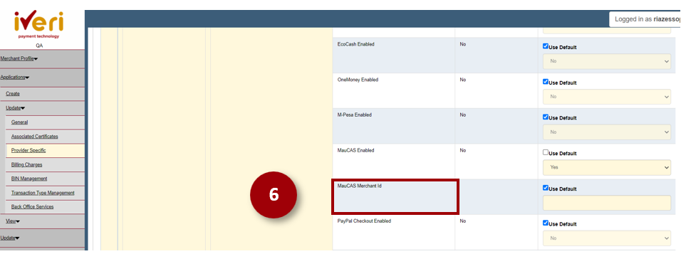 6. The next parameter that needs to be populated is the ‘MauCAS Merchant ID’. This parameter needs to be populated with the Merchant ID.